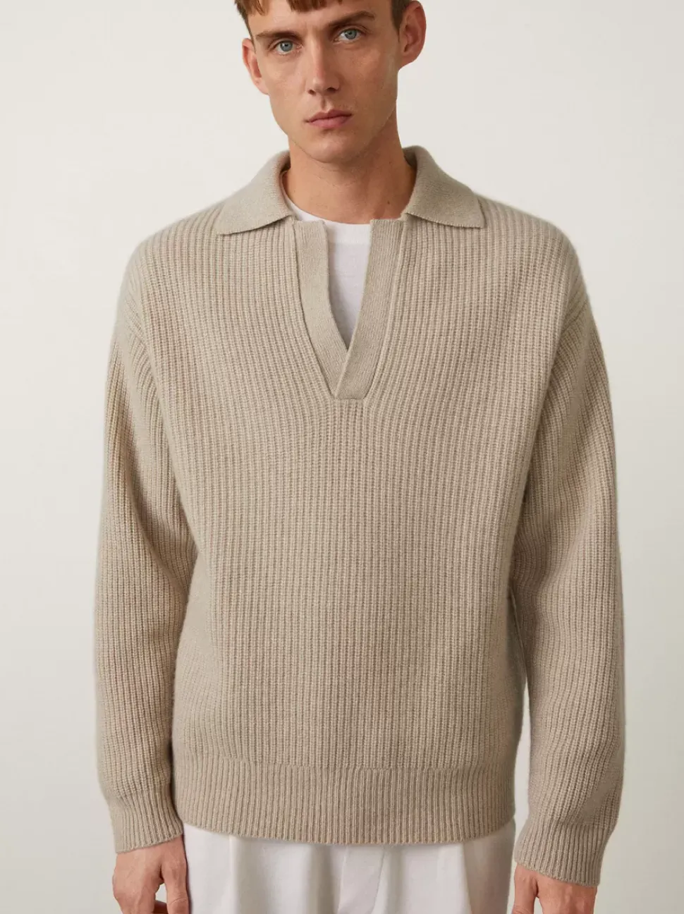 Damien Is Knitted From Fisherman Ribbed Cashmere, With A Nod To The Timeless Polo Shirt. A Relaxed Collar And Body Is Finished By Subtly Ribbed Trims.
