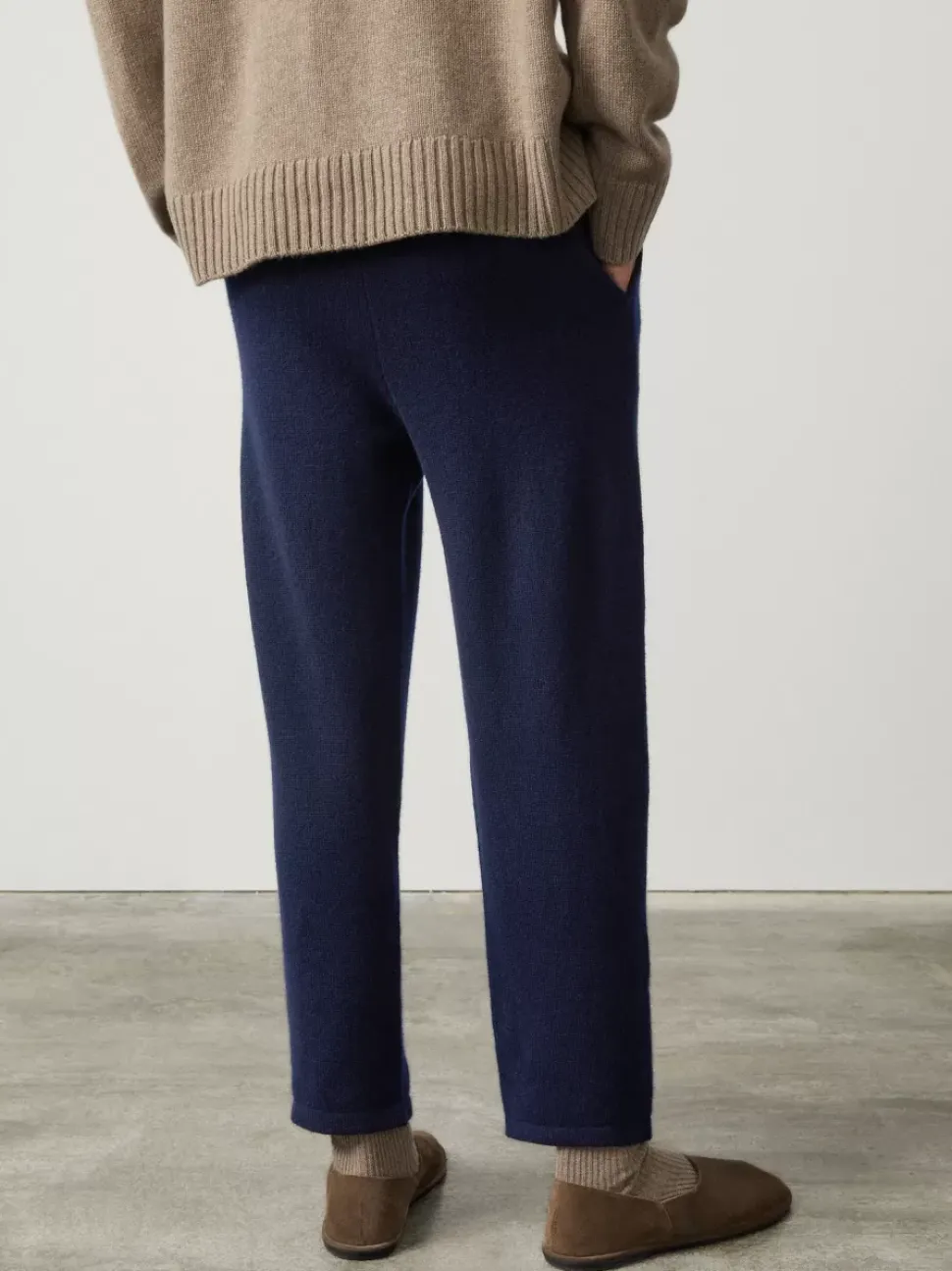 The Casper Pant Is Knitted In A Plain, Pure Cashmere With A Full Leg And Relaxed Fit Pockets. An Elasticated, Ribbed Waistband Allows For A Comfortable Fit With A Concealed Fly. A Pleat Detail Gives A Functional Design Detail And The Hem Is Subtly Panelled For A Clean, Uncomplicaed Finish.