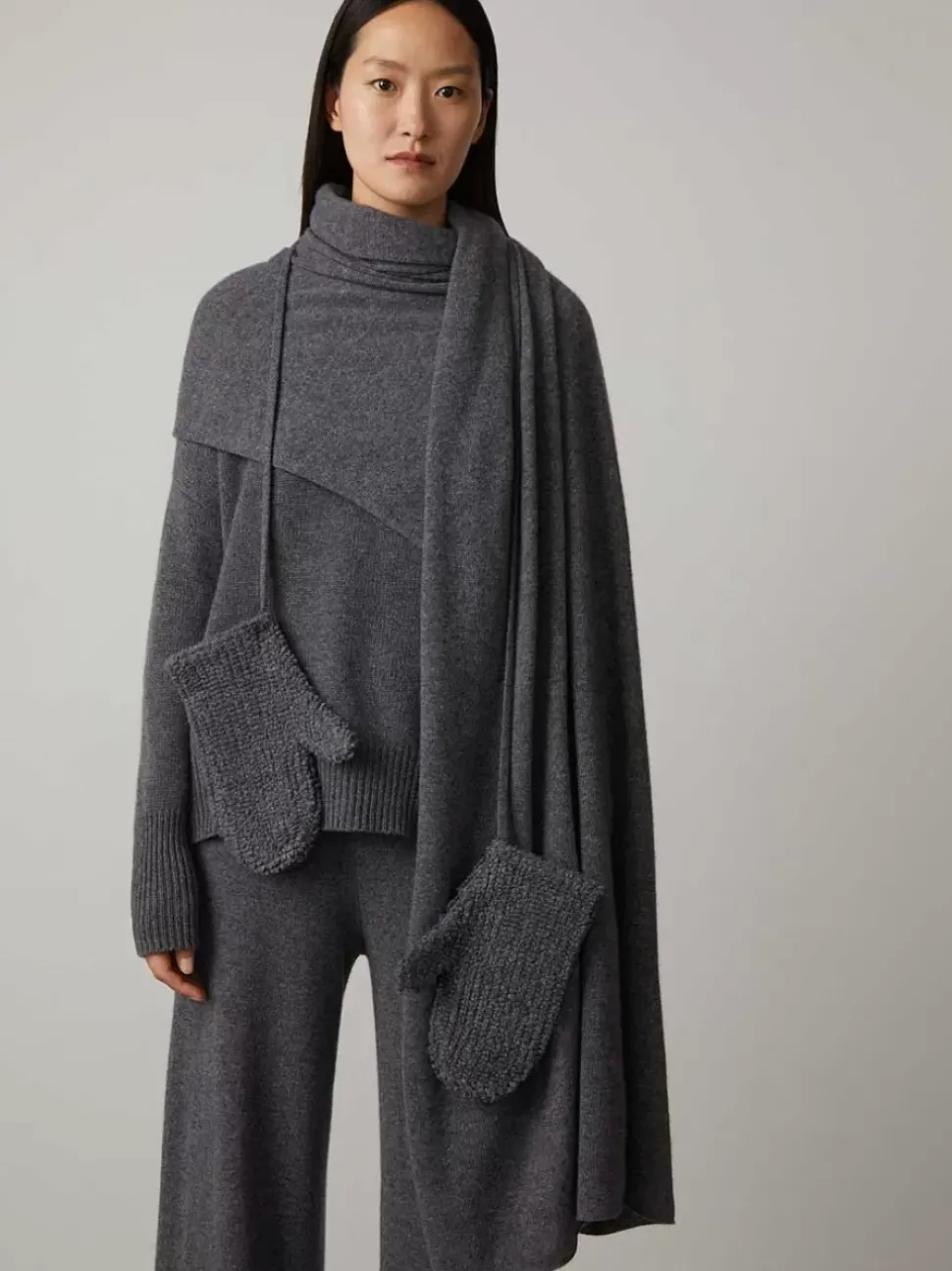Plain Knit Oversized Scarf, Made Of Premium Soft And Airy Cashmere. Paired Here With The Mila Sweater.
