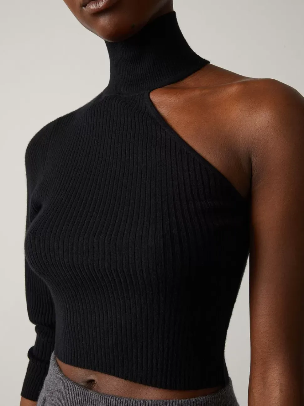 In A Ribbed, Fine Knit 16 Gauge Cashmere, The Tanya Top Is Designed For Day-To-Night Dressing. The One-Shoulder High-Neck Is Balance By A Flattering Sleeve. Slightly Cropped, The Tanya Is Paired Effortlessly With The High-Rise Jema Pant.