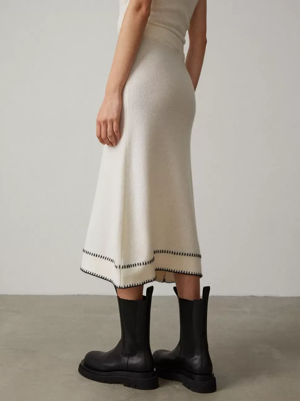 Hand-Finished With Contrast Colour Top-Stitch Detailing, The Adele Skirt Is New For The Autumn Winter Collection. A Comfortable Elasticated Waistband Flatters Its A-Line Shape With The Length Falling To An Elegant Below The Knee Cut.