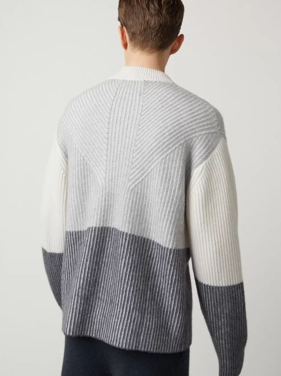 The Julian Sweater Features A Ribbed, Rounded Mock-Neck That Extends Into A Colour-Block Body. The Sleeves And Hem Are Unfinished For An Uncomplicated Detail And With Dropped Shoulders.