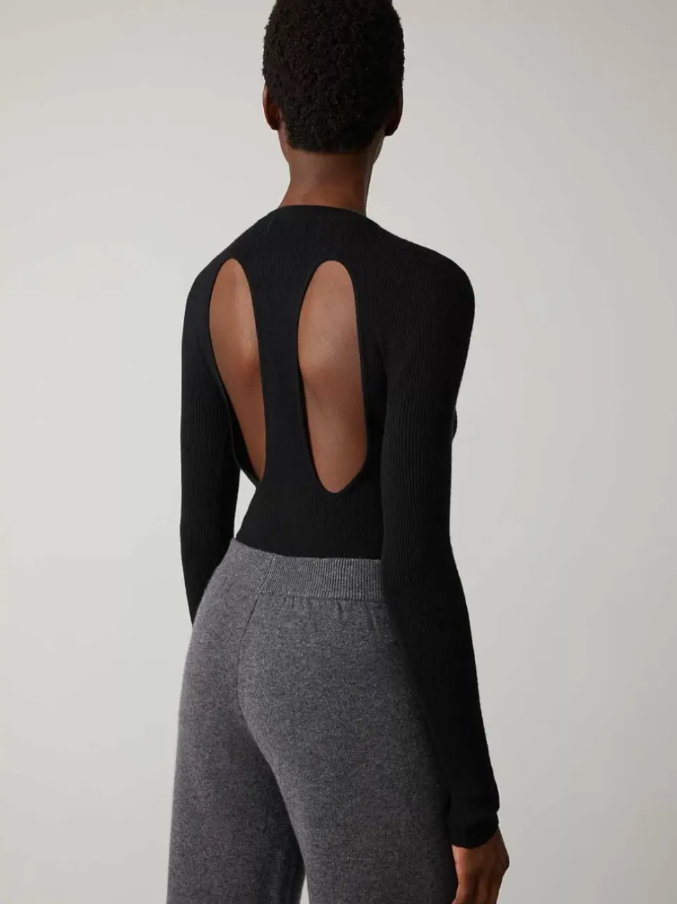 The Patty Bodysuit Is Knitted For A Close Fit In A Tightly Ribbed, Light Weight Cashmere That Extends A Comfortable Stretch. With A Neat Crew Neck And Slender Long Sleeves The Bodysuit Is Balanced By The Open Back Feature.