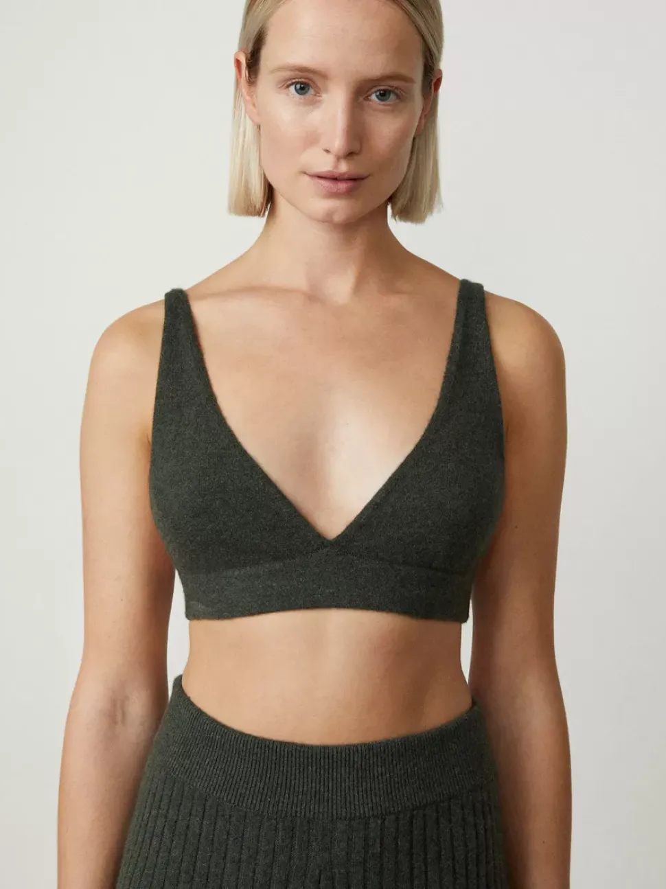 In A Light-Weight Yet Reassuring 12 Gauge Cashmere, The Capucine Bra Is A Pull-Over Piece That Is Secured With An Elasticated Band And Fitted Straps. Layered Across The Collection And In Particular In A Tonal Pairing With The Danni Cardigan.