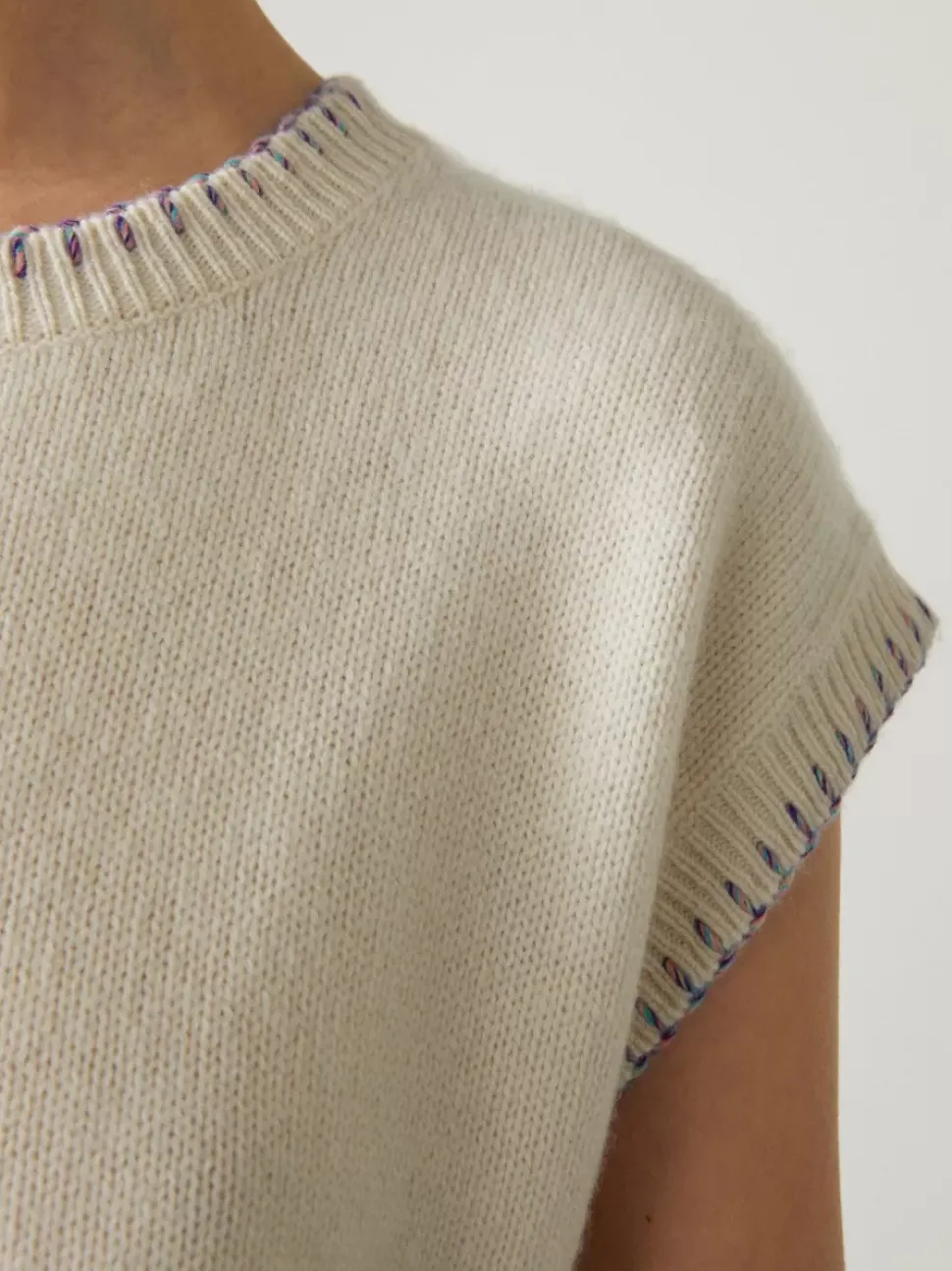 The Lucia Vest Is Refreshed For Summer – With A Multi-Colour Contrast Hand-Stitched Trim. The Regular Fit Has An Elegant Cap Sleep That Falls Slightly Below The Shoulder For A Feminie Silhouette. As Part Of The Whip-Stitch Capsule, Pair It With The Adele Skirt For A Full Look.