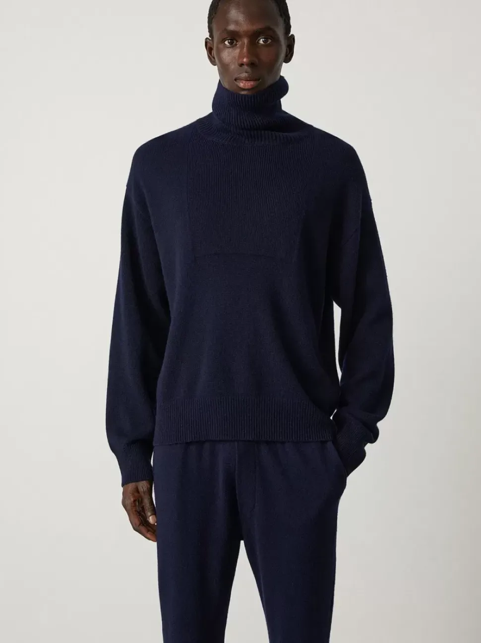 The Darcy High Neck Sweater Is A Plain Knit, Relaxed Body Silhouette With A Panel Of Neat Ribbing. The High Neck Is Also Comfortably Ribbed With A Lose Fit. The Drop Shoulders Are Balanced By A Stepped Hem With A Slightly Longer Back Than Front.