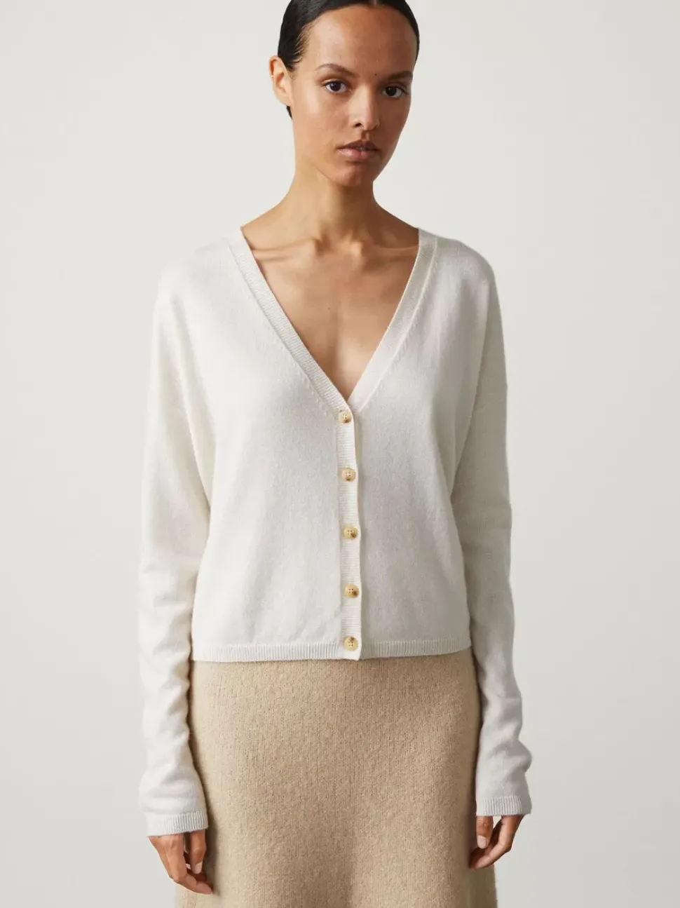 The Abby Cardigan Is Made From Soft Featherweight Cashmere With A Classic Deep V-Neck. The Loose Fitted Silhouette And Dropped Shoulders Is Ideal For Layering, Making Abby A Timeless Trans-Seasonal Essential In Your Wardrobe.