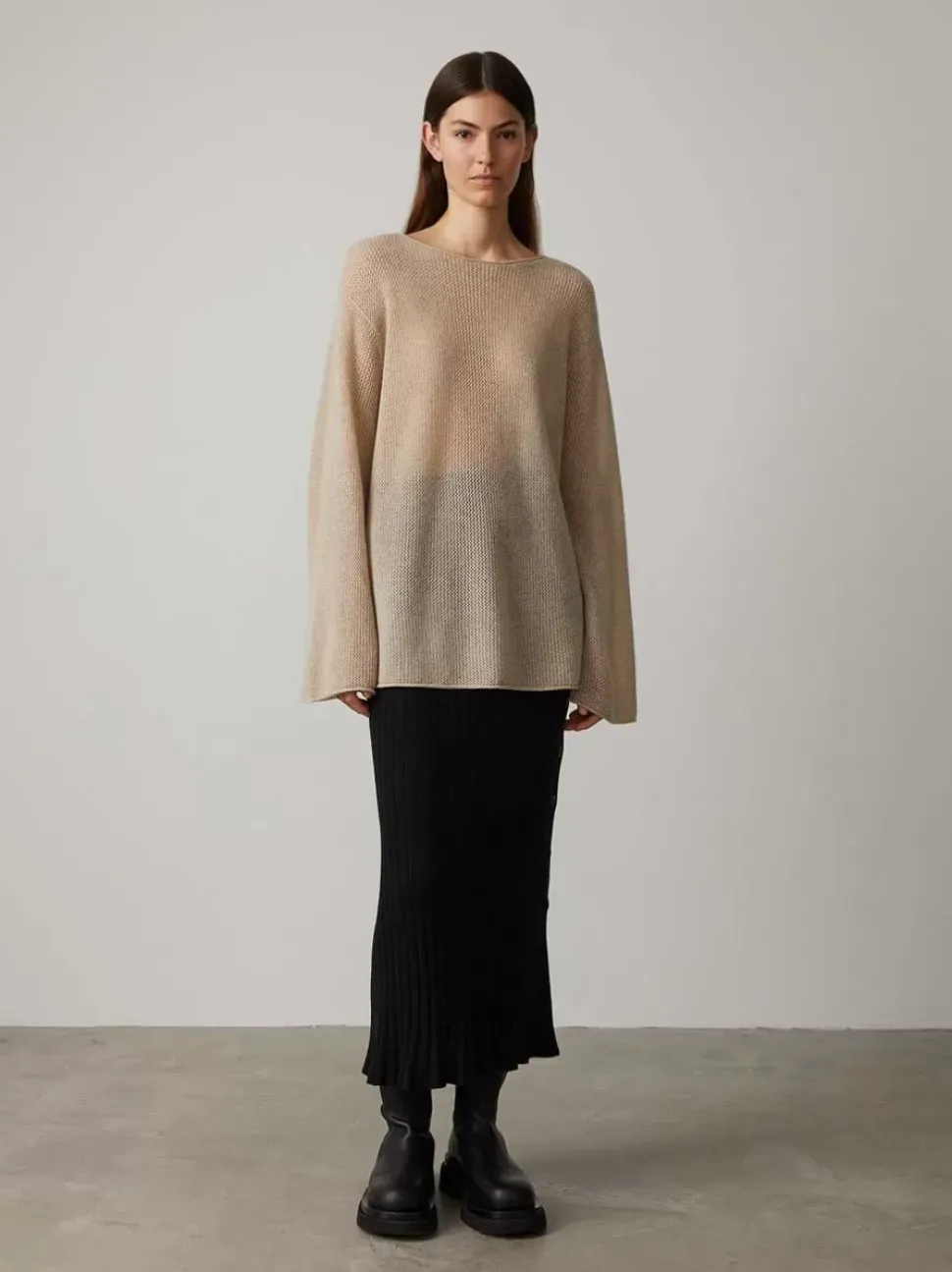 New For The Autumn Winter ’22 Collection, The Open-Knit Group Is Testament To The Versatility And Relevance Of A Summer Wardrobe Made From Cashmere. The Marie Sweater Is A Relaxed Shape With Subtle Boat Neck, Extended Wide Sleeve And Longer Line Fit.