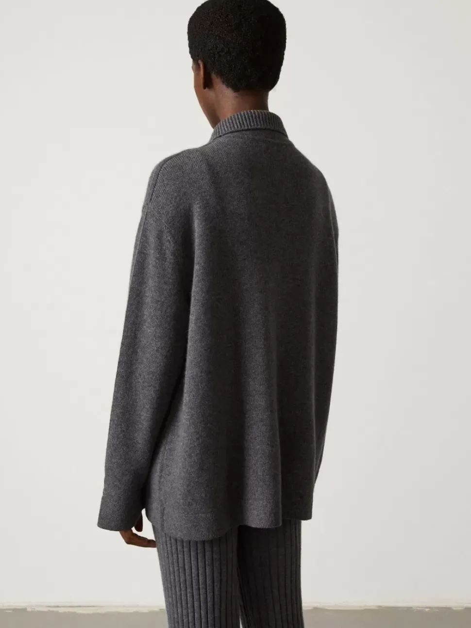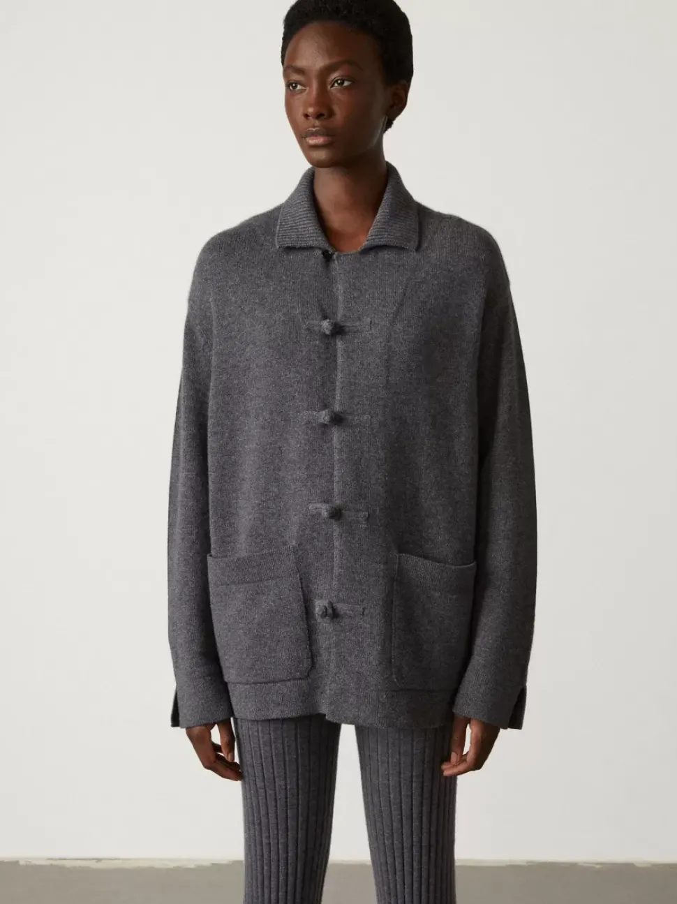 New In, The Longline, Plain Knit Bryson Jacket Displays Its Craftsmanship In A Substantial 7 Gauge Cashmere. It’s Detailed With A Frog Button Down Feature With A Nod Towards The Brands Eastern Heritage. A Contrast Rib Collar And Split Cuff Keeps A Modern Appeal.