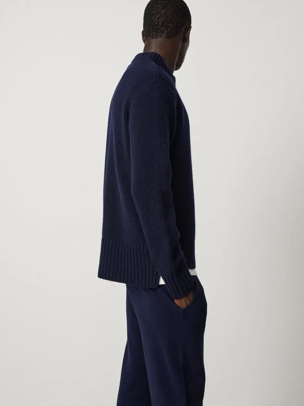 The Claude Crew Neck Is Knitted In A 3-Ply Plain Knit Cashmere, Featuring Ribbed Trims And Cuffs. The Extended Ribbed Panel At The Back Is Stepped From The Front, Giving A Slightly Longer Silhouette And Relaxed Feel.