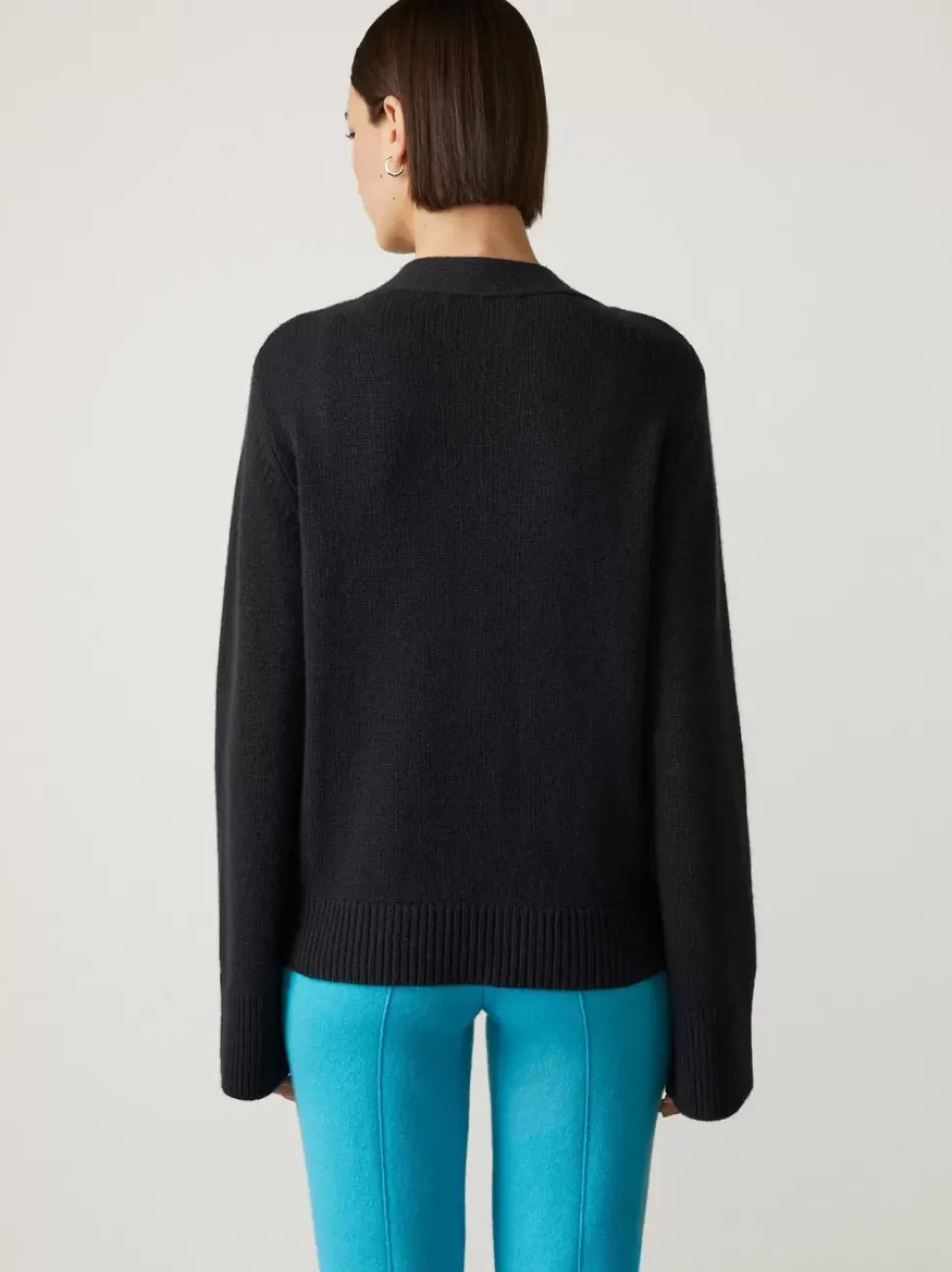 Accentuated By Patch Pockets, Ribbed Trims And Dropped Shoulders, This Deep V-Neck Cardigan Is Designed To Be A Cherished Permanent WardroBe Staple. The Extended Sleeves Creates A Feminine Yet Elevated Look.