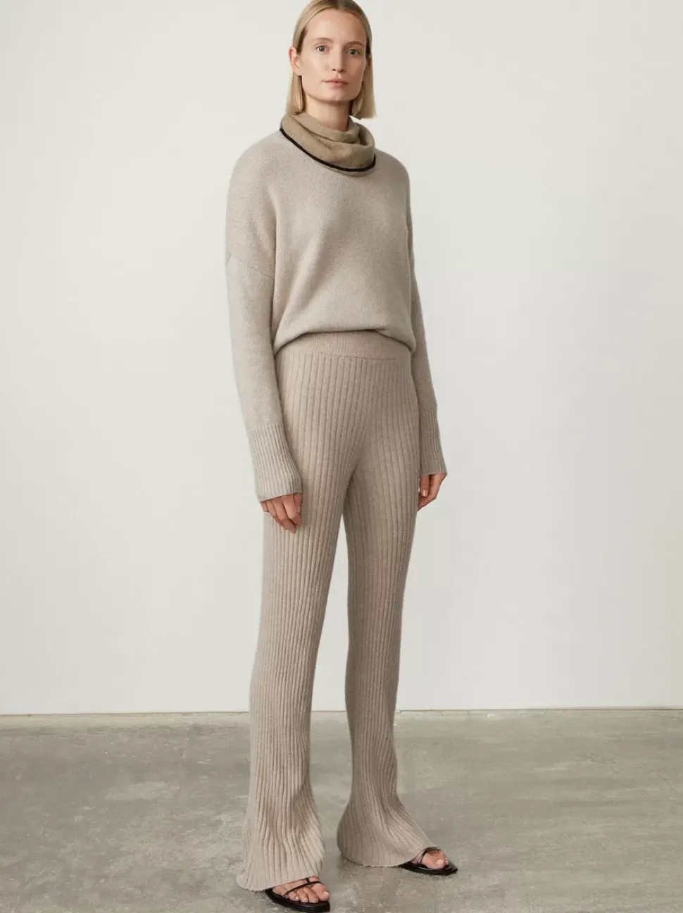 New For Spring, The Delia Pant Is Crafted In Our Signature Paddington-Rib Cashmere, Lending A Fluid Fit And Tactile Finish. The Mid-Waist Fit With Elasticated Waistband Are Balanced By The Full-Length Leg And Slight Flare.