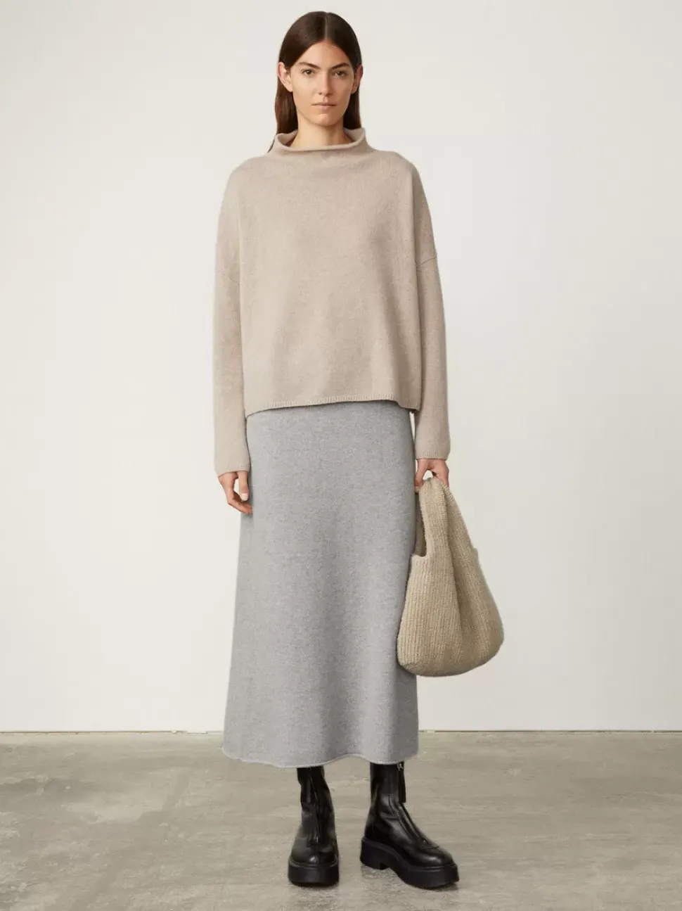 Sandy Sweater Has A Straight Fit With Dropped Shoulders And A Raw Hem Mock Neck. The Relaxed Silhouette Is Knitted In Our Middleweight Cashmere, Falling Effortlessly Against Your Skin.