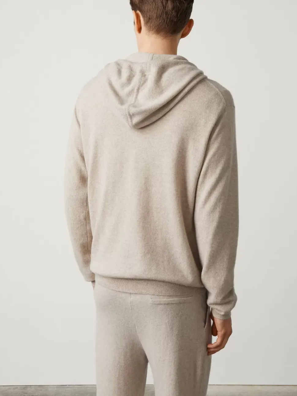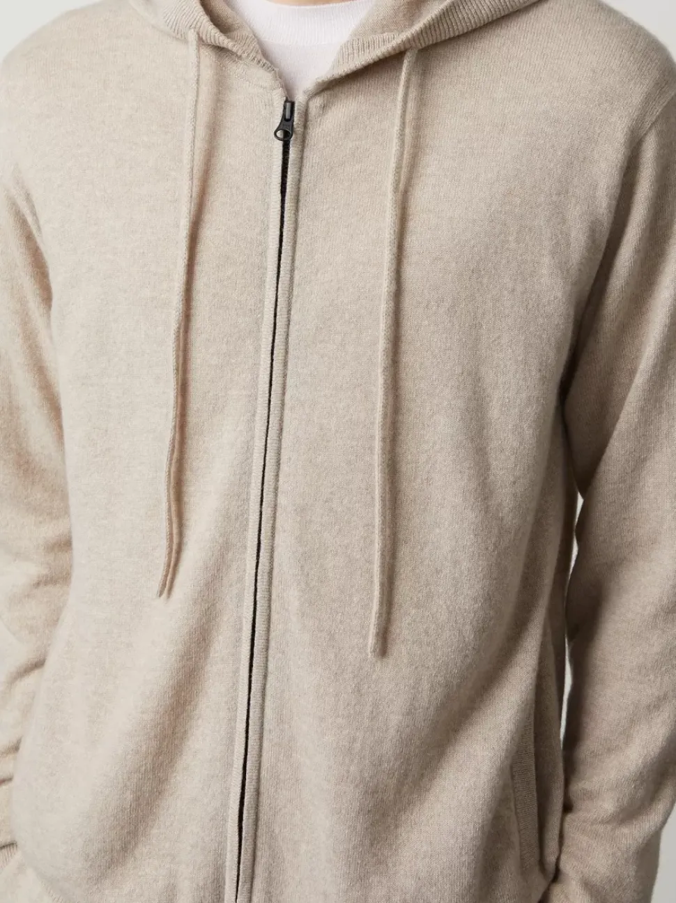 In A Plain Knit Cashmere, The Emerson Zip Hoodie Has A Regular Body, Complete With An Adjustable Tie Hood. The Hem Simply Features A Flat, Ribbed Panelling.