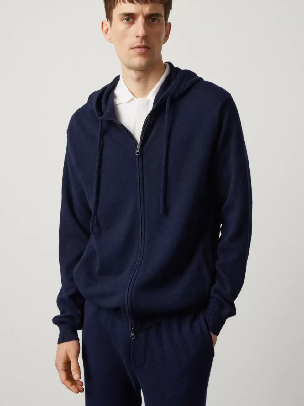 In A Plain Knit Cashmere, The Emerson Zip Hoodie Has A Regular Body, Complete With An Adjustable Tie Hood. The Hem Simply Features A Flat, Ribbed Panelling.