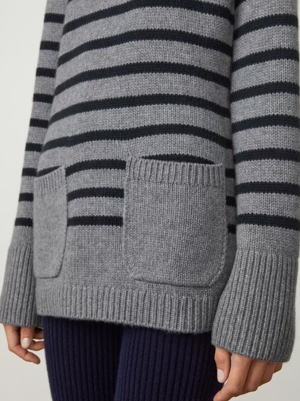 Accentuated By Patch Pockets, Ribbed Trims And A Round Neck, This Striped Sweater Brings Both Sophistication And Comfort To Your Look. Spun In Heavyweight Cashmere With Sleeves That Reach Beyond The Fingertips.