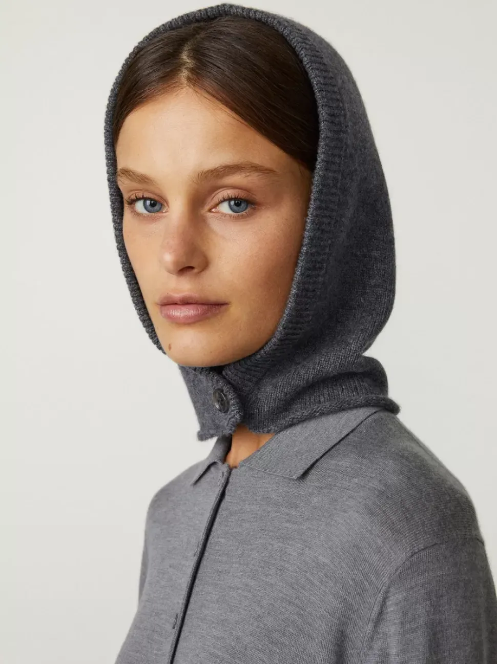 The Ilo Hood Is Knitted In A Light 12Gg Plain-Knit Cashmere That Can Be Worn Up Or Down, Fastened And Tucked Under The Collar. The Slim Ribbed Trim Frames The Face And Defines Its Silhouette.