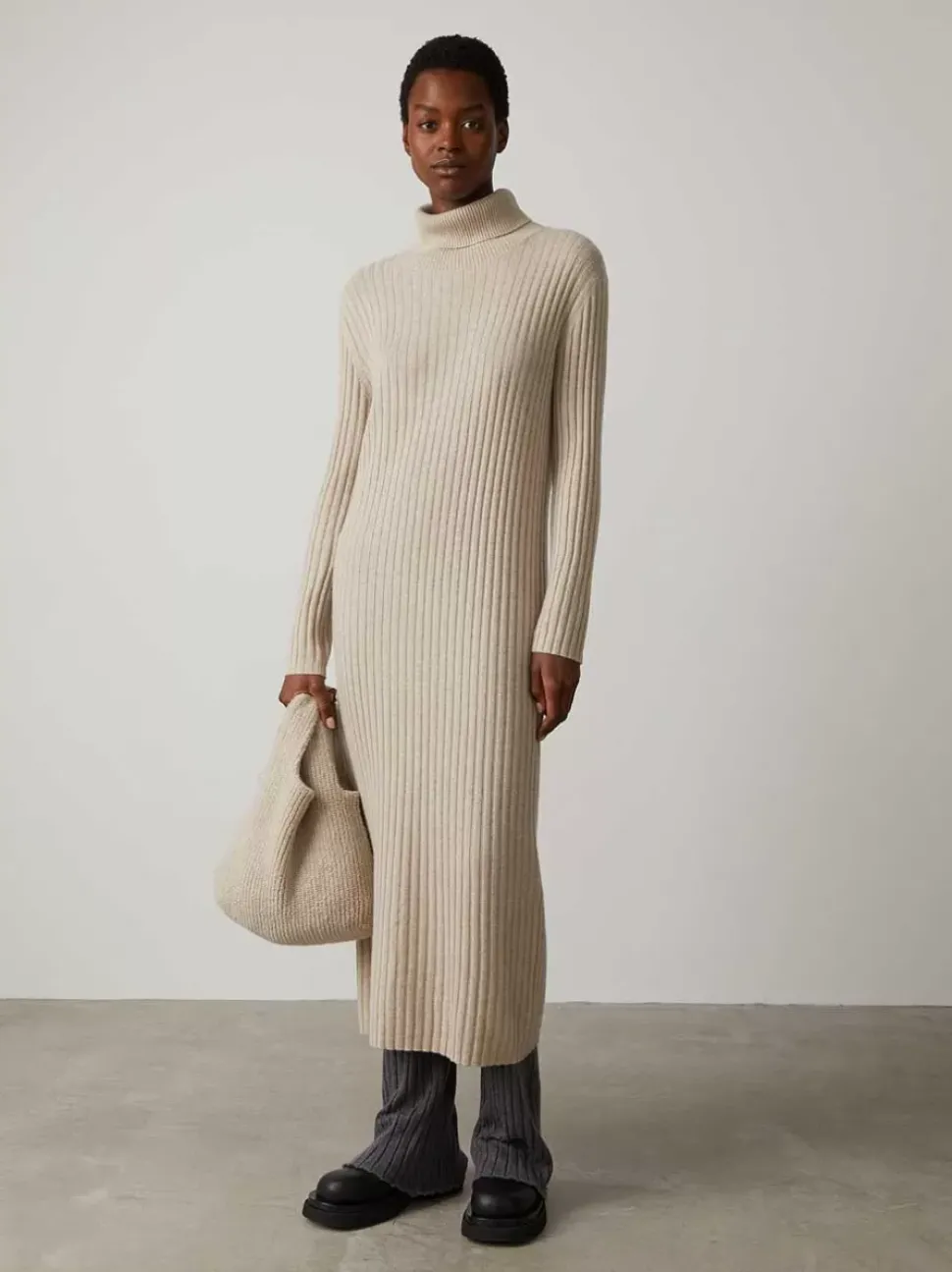 The Lauren Dress Is Cut For A Full Length, Effortless Fit In Ribbed Cashmere. With A Roll Neck And Long Sleeves, Layer Up Or Down And Pair With The Kaia Bag For An Understated Look.