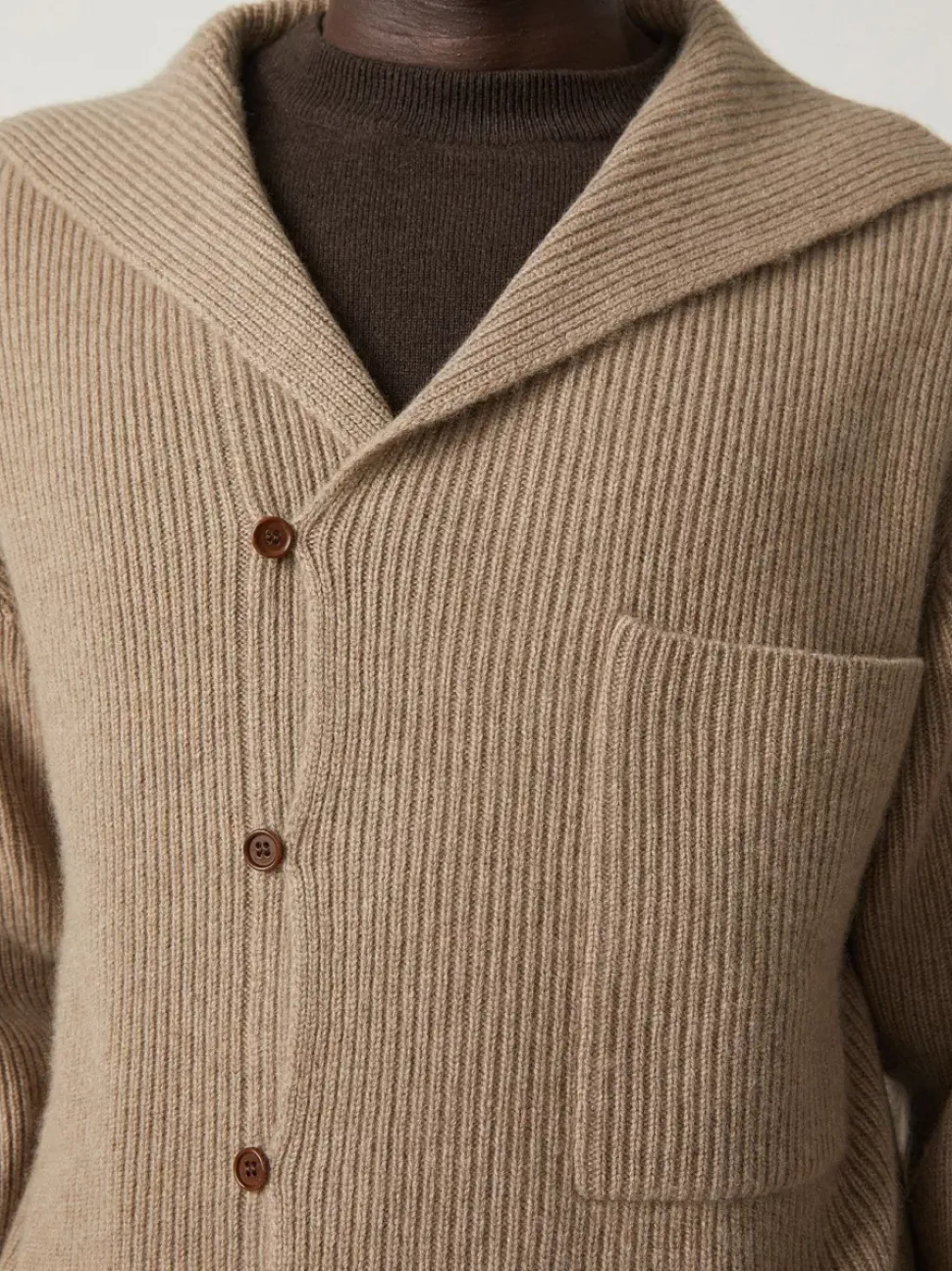 The Devereux Sweater Is Knitted In A Slim Ribbed Cashmere, Giving Comfortable Stretch Whilst Retaining Its Form. A Slight Dropped Shoulder And Front Patch-Pocket Is Balanced By Clean Trim Detailing. An Assymetric, Adjustable Collar Makes The Devereux A Unique Style For Autumn Winter.