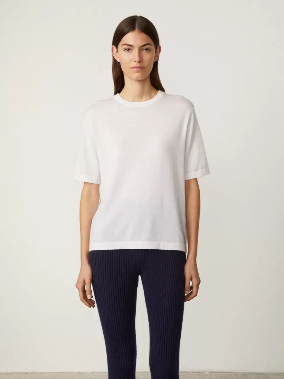 In A Featherweight 16 Gauge Fine Cashmere, The Julia Tee Has A Regular Fit, With A Round Neck And Slightly Extended Short Sleeves For A Flattering Fit. Our 16 Gauge Cashmere Is Characterised By Its Longer, Fine Cashmere Fibres That Are Selected To Create The Yarn. These Fibres Come Together To Create A Fluid Yet Robust Body That Has A Silk-Like Touch.