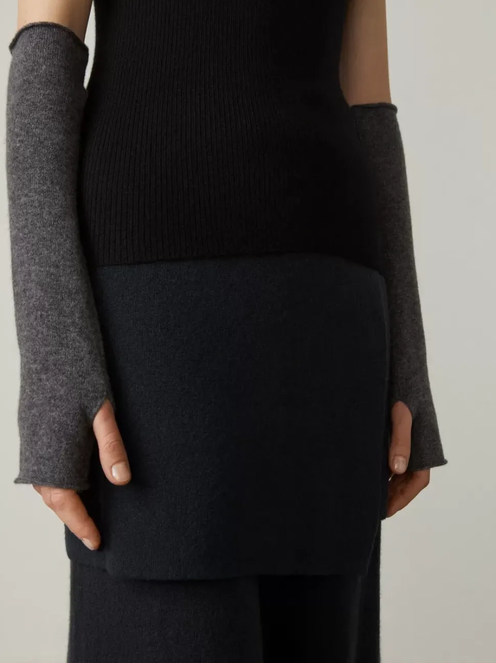 Long, Plain Knit And Featherweight Cashmere Arm Warmers With Thumb Holes And A Soft Rolled Edge. Wear With Theanni Coat For Seamless, Warming Look.