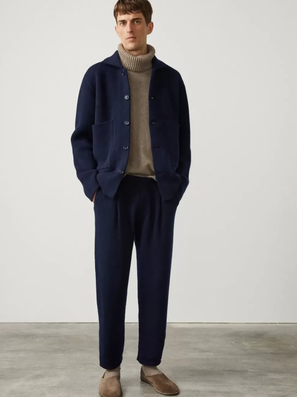 The Casper Pant Is Knitted In A Plain, Pure Cashmere With A Full Leg And Relaxed Fit Pockets. An Elasticated, Ribbed Waistband Allows For A Comfortable Fit With A Concealed Fly. A Pleat Detail Gives A Functional Design Detail And The Hem Is Subtly Panelled For A Clean, Uncomplicaed Finish.