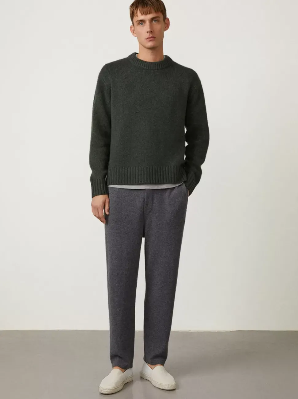 The Claude Crew Neck Is Knitted In A 3-Ply Plain Knit Cashmere, Featuring Ribbed Trims And Cuffs. The Extended Ribbed Pa…