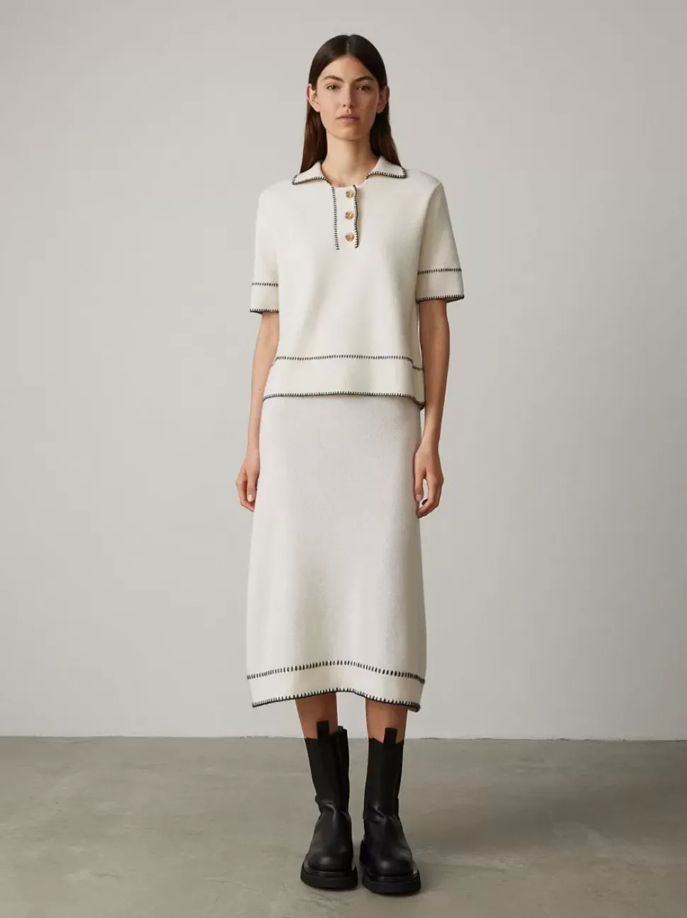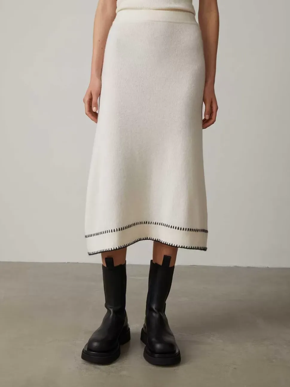 Hand-Finished With Contrast Colour Top-Stitch Detailing, The Adele Skirt Is New For The Autumn Winter Collection. A Comfortable Elasticated Waistband Flatters Its A-Line Shape With The Length Falling To An Elegant Below The Knee Cut.