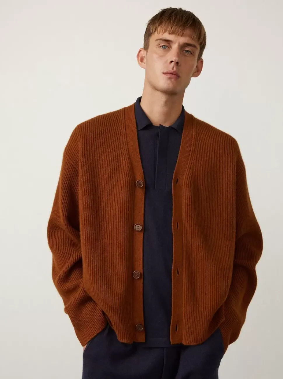 In A Ribbed 3 Ply Cashmere, The Dion V-Neck Cardigan Has A Relaxed Body And Dropped Shoulders. With A Panel Pocket And Neat Trim, It Is Designed For Layering Throughout The Year.