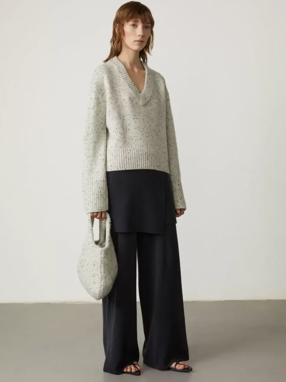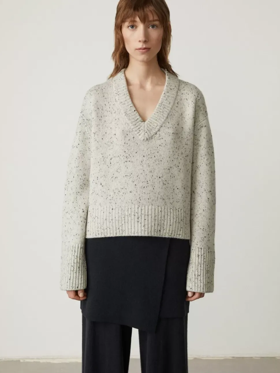 New In, The Aletta Sweater Has Been Reimagined In Our Speckled, Blended Cashmere In A Warming Grey Palette. Its Relaxed Silhouette Is Balanced By Extended Fisherman Ribbed Trims, Wider Extended Sleeves And Dropped Shoulders.