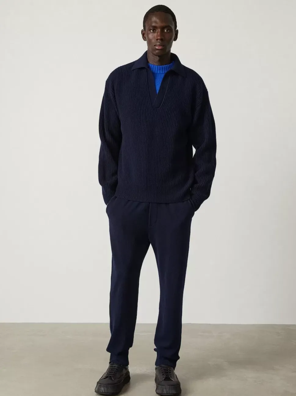 Damien Is Knitted From Fisherman Ribbed Cashmere, With A Nod To The Timeless Polo Shirt. A Relaxed Collar And Body Is Finished By Subtly Ribbed Trims. Layer Over The Claude Sweater And Beaumont Trousers.