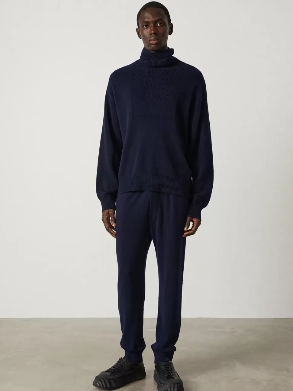 The Darcy High Neck Sweater Is A Plain Knit, Relaxed Body Silhouette With A Panel Of Neat Ribbing. The High Neck Is Also Comfortably Ribbed With A Lose Fit. The Drop Shoulders Are Balanced By A Stepped Hem With A Slightly Longer Back Than Front.