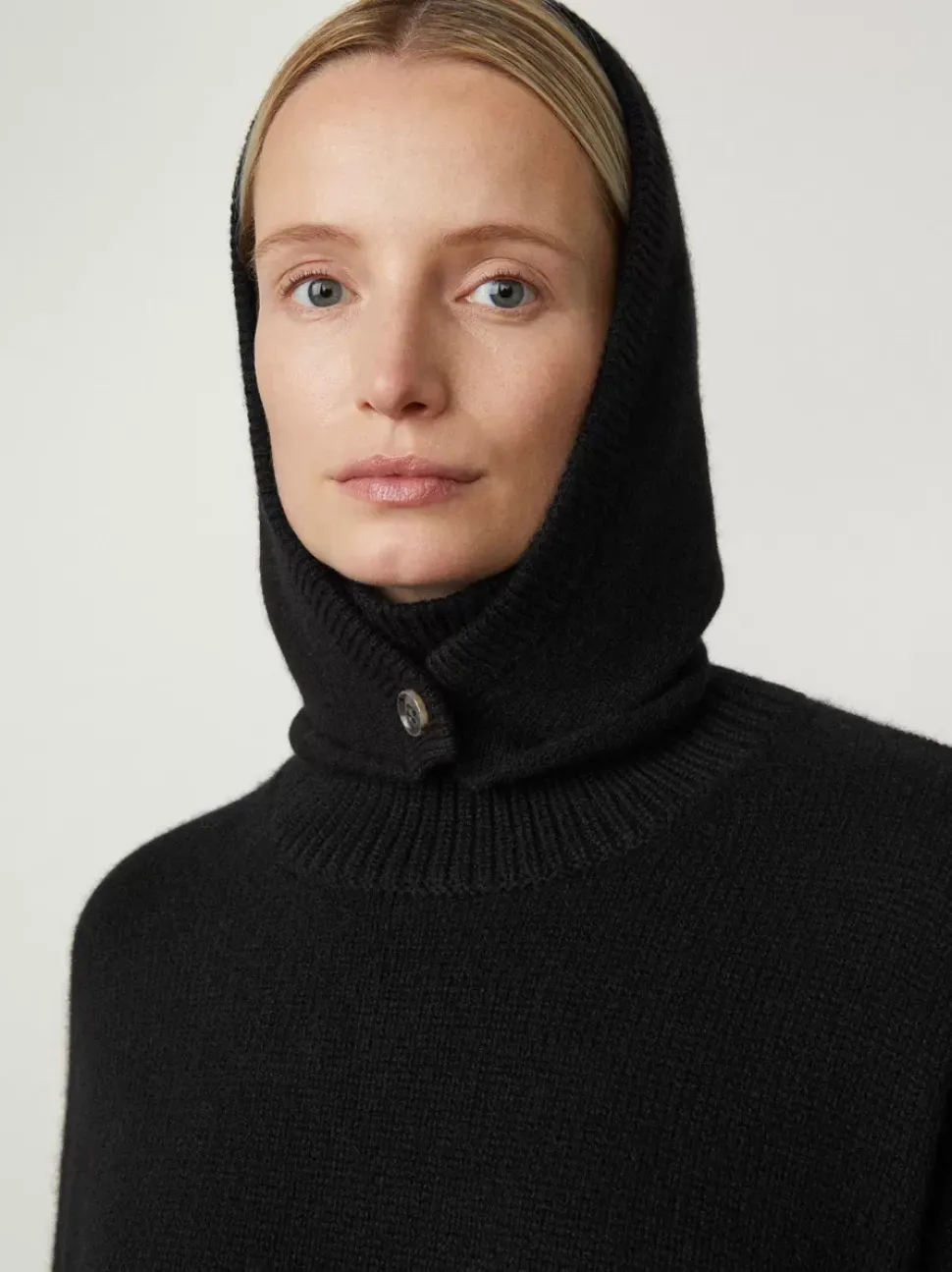 The Ilo Hood Is Knitted In A Light 12Gg Plain-Knit Cashmere That Can Be Worn Up Or Down, Fastened And Tucked Under The Collar. The Slim Ribbed Trim Frames The Face And Defines Its Silhouette.