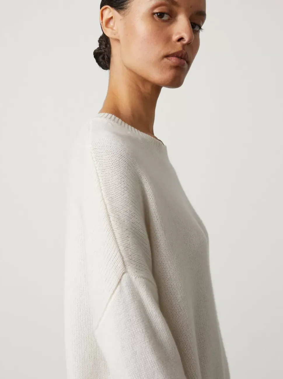 With Attention To Its Details, This Timeless Cashmere Sweaterredefines The Classic Pullover. With A Dropped Shoulder, Side Vents And Longer Back, It Flatters The Feminine Form. Ribbed Trims Highlights The Neckline, Cuffs, And Hem.