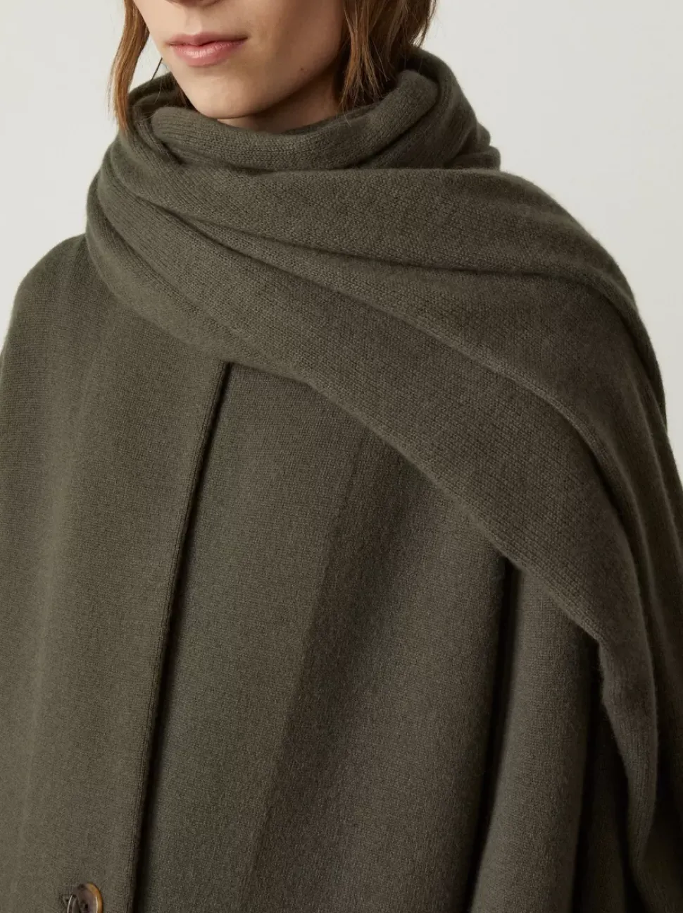 Plain Knit Oversized Scarf, Made Of Premium Soft And Airy Cashmere. Paired Here With The Tonal Anni Coat.