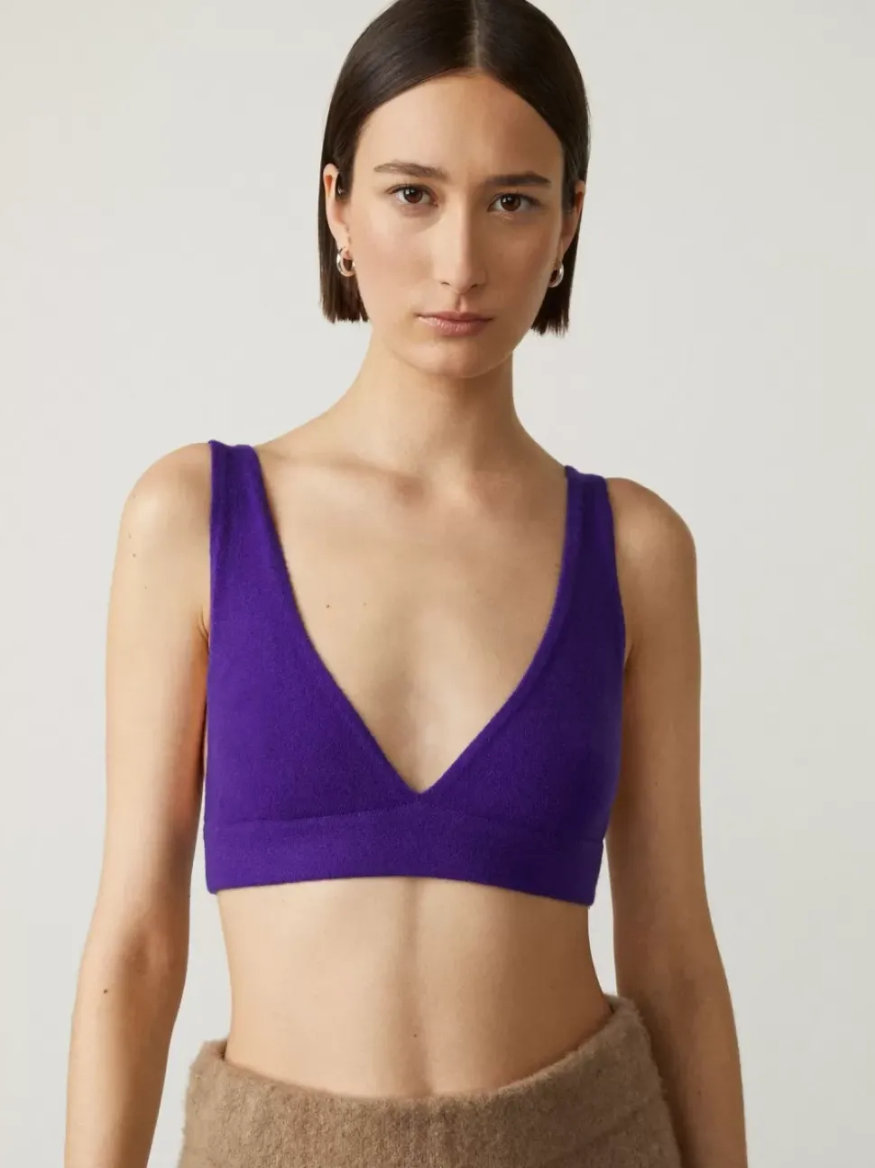 In A Light-Weight Yet Reassuring 12 Gauge Cashmere, The Capucine Bra Is A Pull-Over Piece That Is Secured With An Elasticated Band And Fitted Straps.