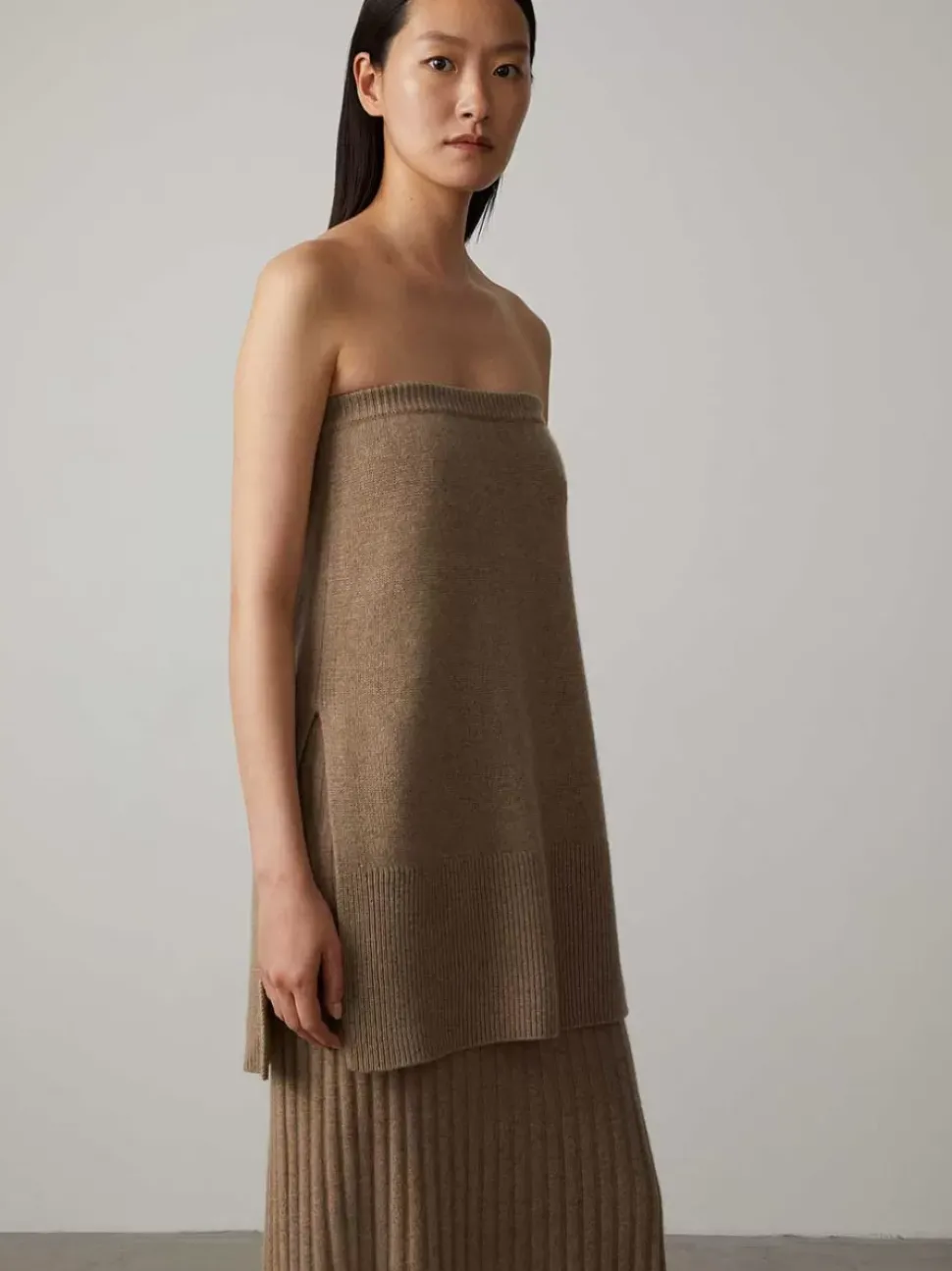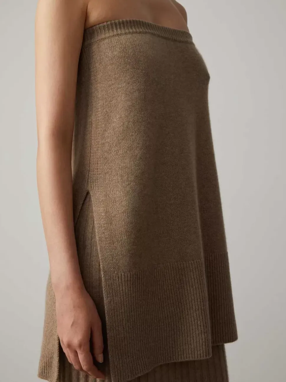 The Gabriella Pure Cashmere Tube Top Is Designed With An Extended Length With Side Vents That Feature Extended Ribbed Panels. An Elasticated Band Ensures A Comfortable, Secure Fit. Gabriella Pairs Seamlessly With The Celine Skirt In Mole For A Tonal Elegant Look.