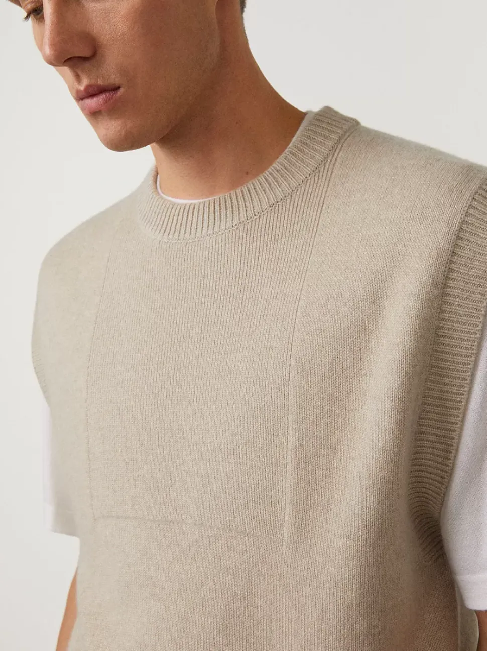 The Dennis Vest Is A Plain Knit, Relaxed Body Silhouette With A Panel Of Neat Ribbing. Ribbed Trims Give The Dennis A Structure Finish Whilst Retaining Its Casual Feel.
