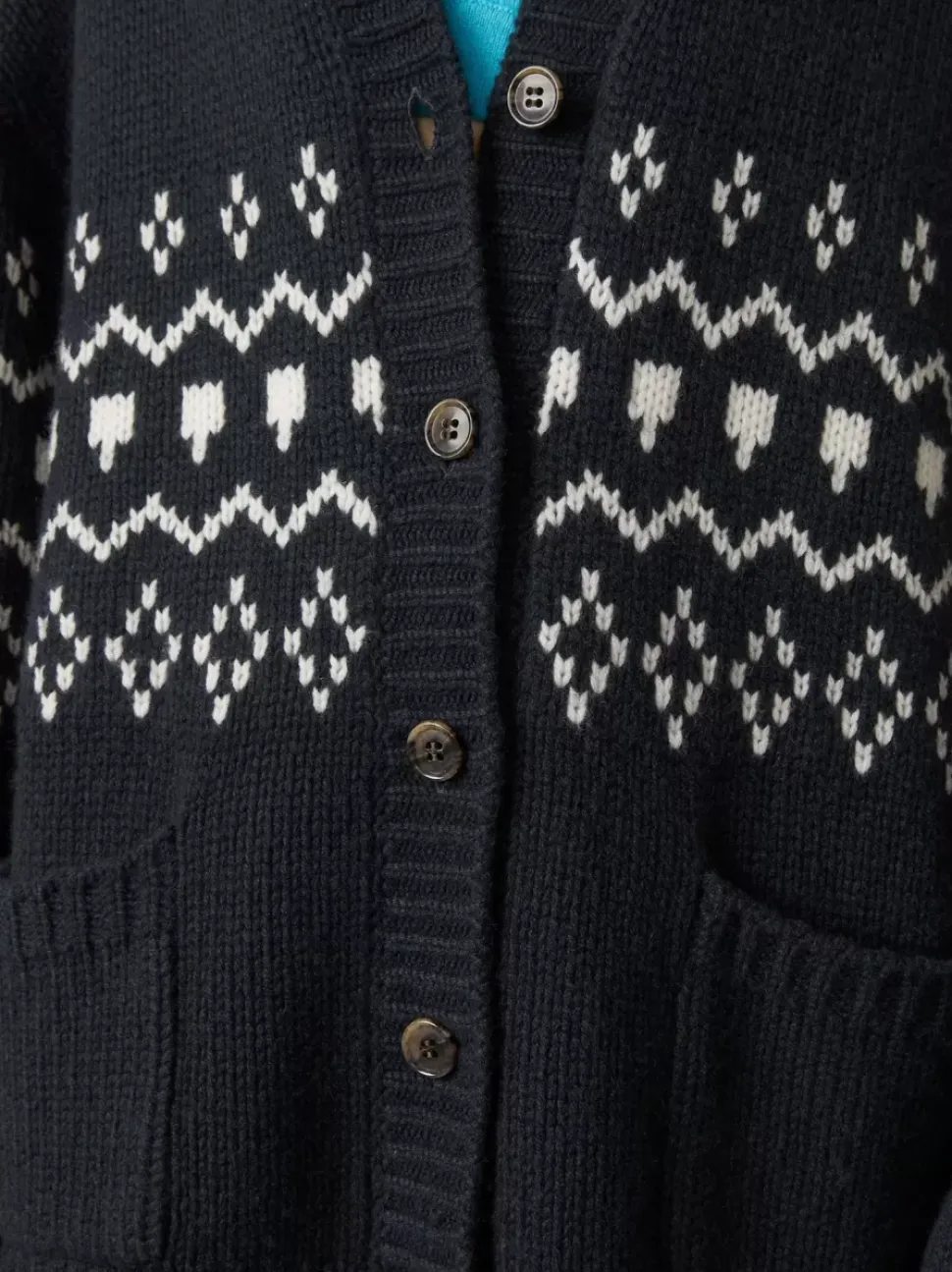 In A Winter Jacquard Pattern, The Greyson Cardigan Has A Relaxed Fit For A Comforting Drape. The Fair-Isle Patterning Extends Around The Body And Is Centered By A V-Neck Button Front Closure.
