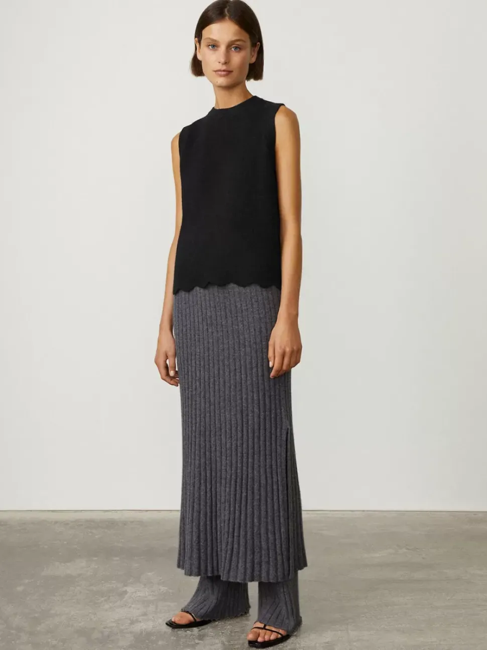 The Ellen Vest Is Knitted In The Perfect Spring/Summer Cashmere – In A 12 Gauge, 1 Ply Body. A Regular Fit Is Accentuated By The Scalloped Trim And A High Round Neck And Neat Sleeveless Silhouette Make It A Flattering Piece For Day And Evening. Pair With The Katie Skirt Or Georgia Shorts.